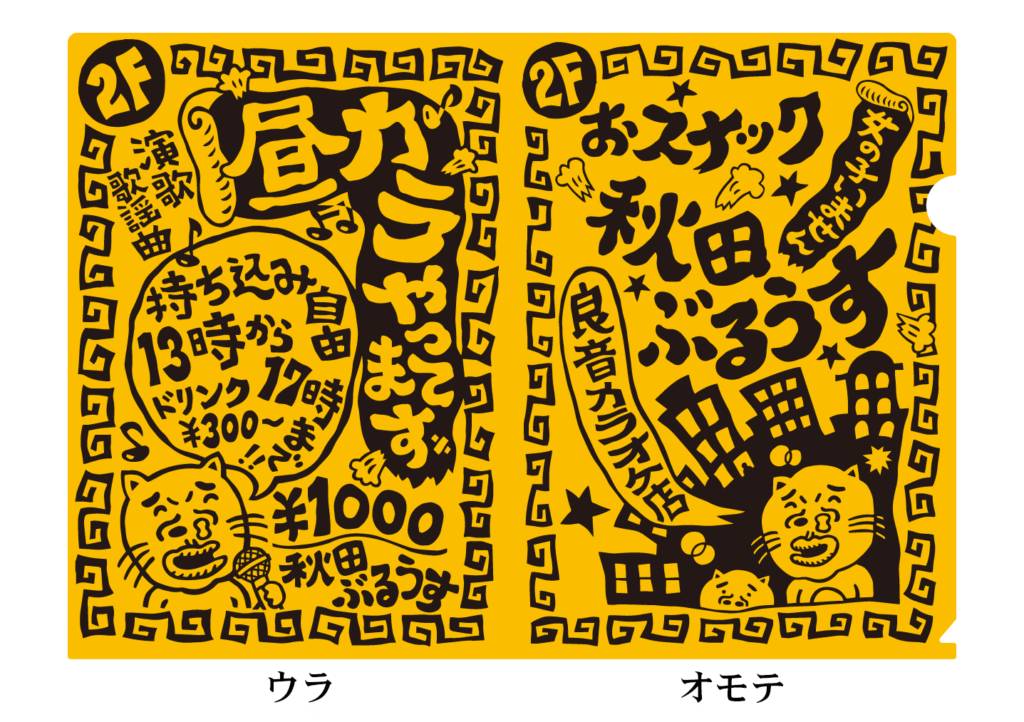 新宿・荒木町の歌謡おスナック「秋田ぶるうす」の電飾看板がA4クリアファイルになりました。デザインは、秋田ぶるうすのマスター東陽片岡さんです。